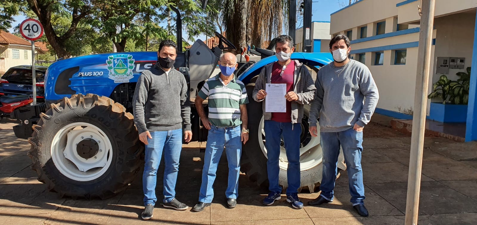 Estiveram no ato de entrega do trator à Aprosac o prefeito Gabriel Fachiano, o produtor rural Paulo Garrido, o presidente da associação, Edimilson Izauro Dias, e o vice-prefeito Leandro da Silva.