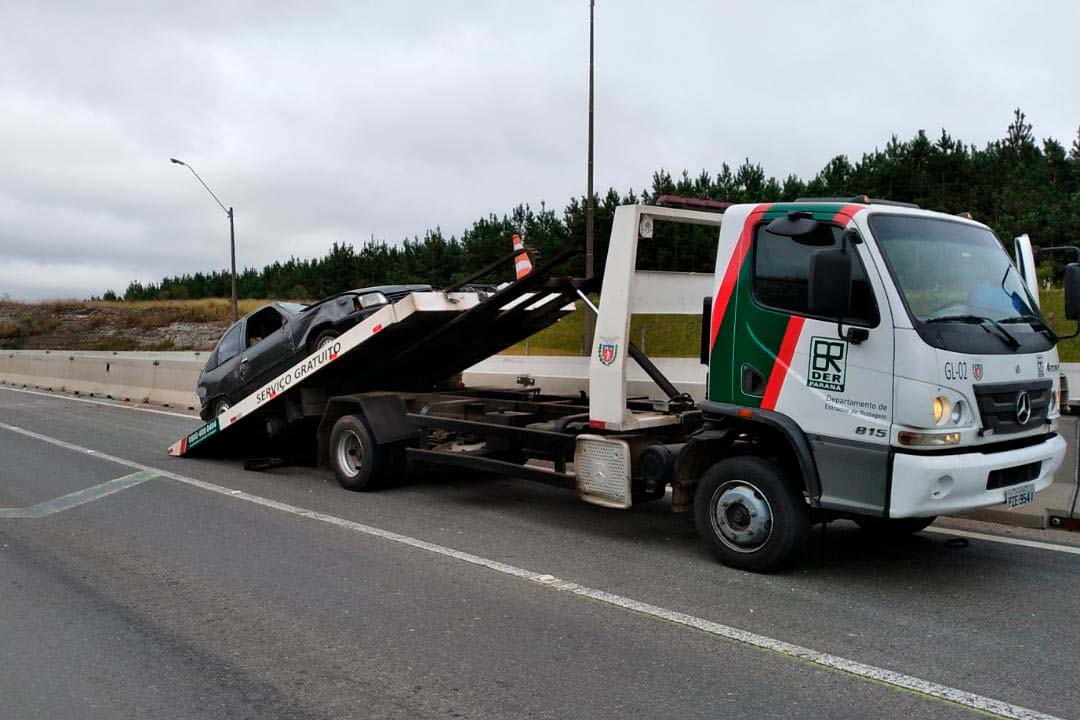 Agora, o DER/PR firmou a contratação de guinchos e demais serviços pelo prazo de 12 meses para as rodovias, com investimento de R$ 13.279.999,56. Neste lote, estão inclusas a PR-323 (divisa com São Paulo até Warta), PR-445 (de Warta até o entroncamento com a BR-369), BR-369 (divisa com São Paulo até Cambé), BR-153 (da divisa com São Paulo até o entroncamento com a PR-092), PR-090 (de Jataizinho até Assaí), PR-862 (Contorno Norte de Ibiporã), PR-090 (de Ibiporã até Sertanópolis) e PR-855 (em Bandeirantes).