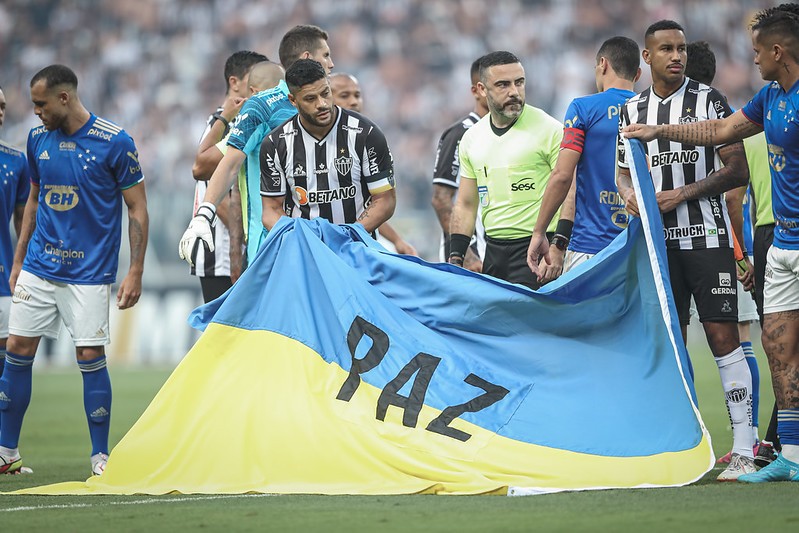 Jogadores de Atlético e Cruzeiro pediram paz para combater a guerra na Ucrânia. Internamente, escalada de violência no futebol brasileiro volta a preocupar foto: Clube Atlético Mineiro/Pedro Souza