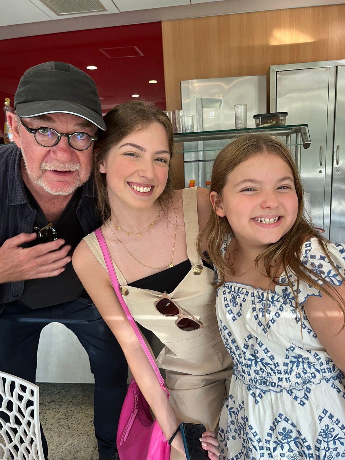 Nos bastidores, o diretor Rudi Lagemann, o Foguinho, e as duas atrizes.
