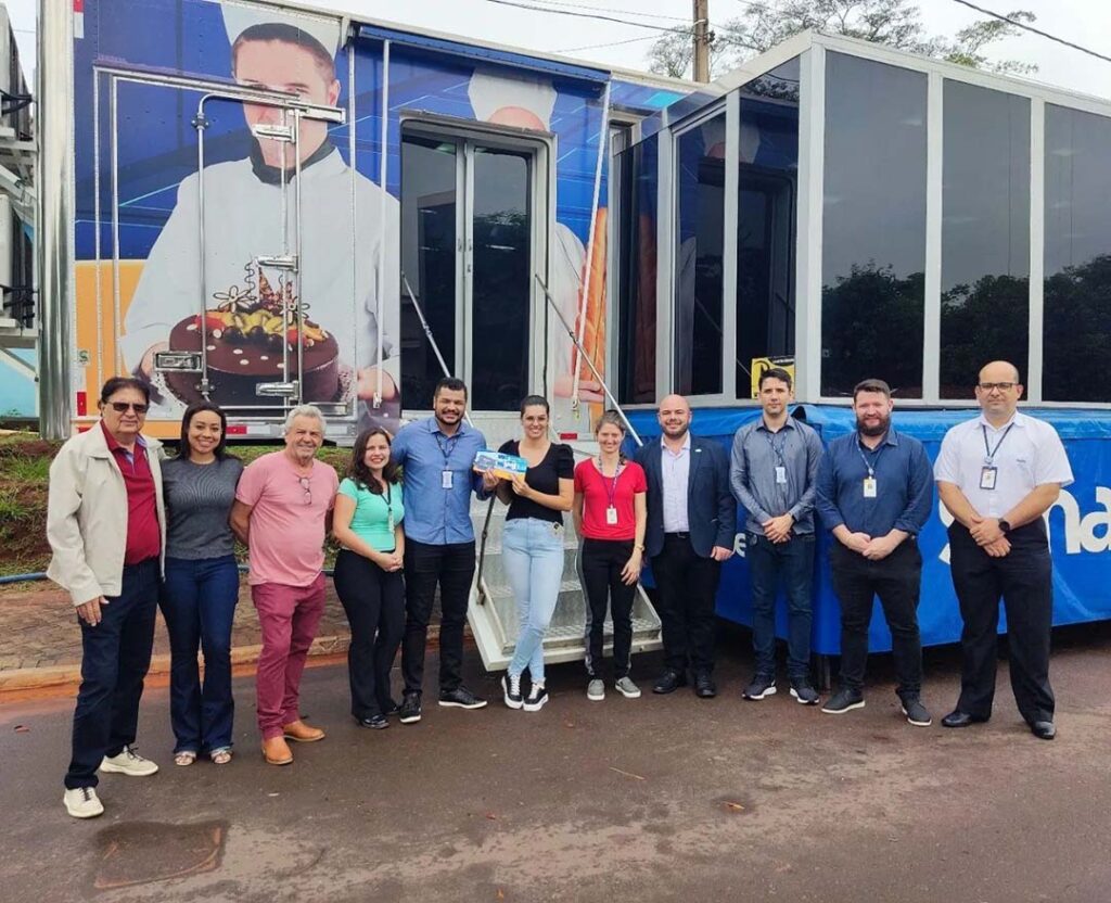 O diretor do Senac Raul Pizarro, esteve no início da tarde de quarta-feira (21/09) realizando a entrega simbólica das chaves da Carreta Escola ao prefeito Álvaro de Freitas Netto (Arapongas).