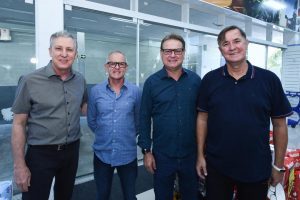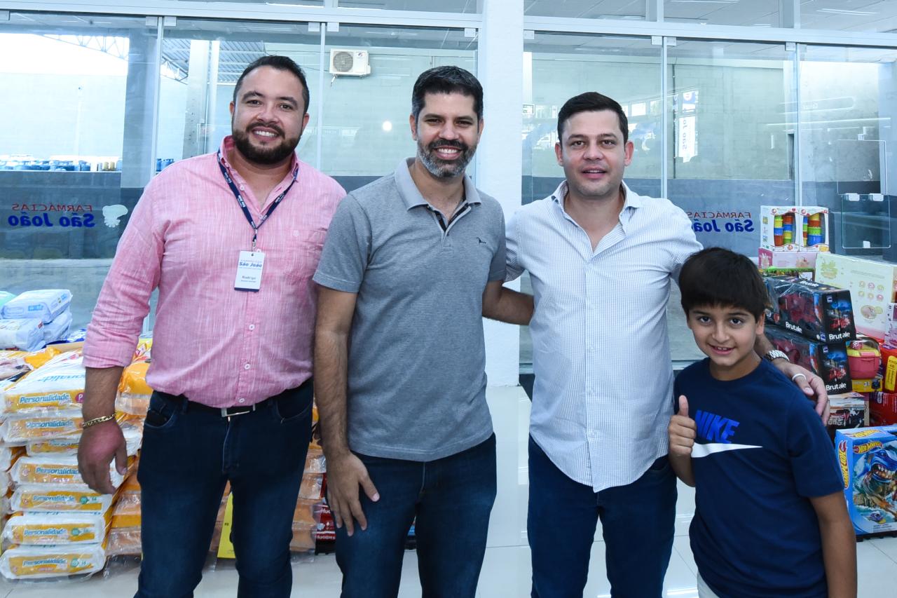 Prefeito de Terra Rica e presidente da Amunpar Júlio Leite também prestigiando a inauguração da segunda loja da Farmácia São Joao, em Paranavaí. Na foto: O diretor do grupo, Rodrigo Ferreira; presidente Júlio Leite; deputado Tião Medeiros; Pedro Medeiros, sobrinho do deputado Tião.