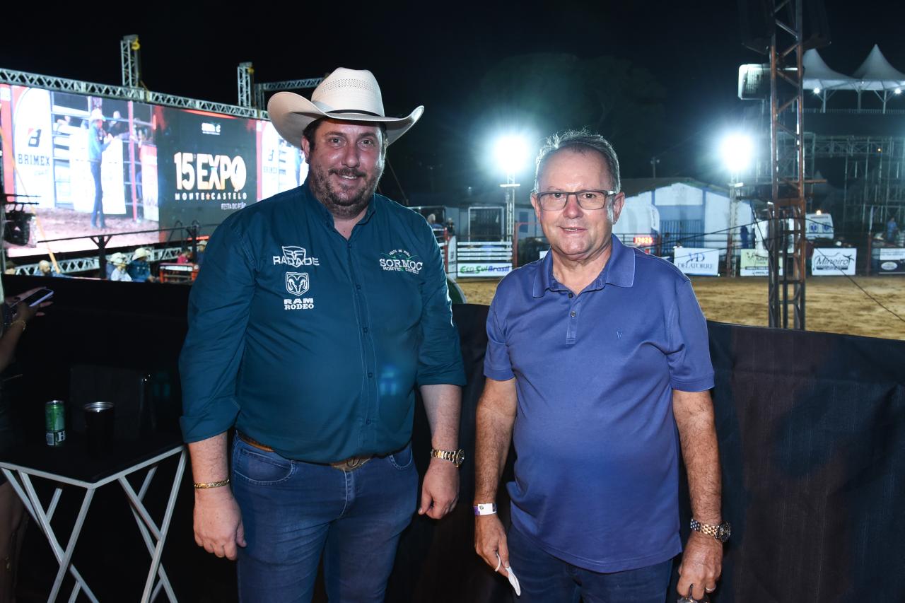 Presenças ilustres na 15ª Expo Monte Castelo. Entre as lideranças políticas o ex-prefeito de Paranavaí Rogerio Lorenzetti. Na foto com o presidente Tom Volpato.