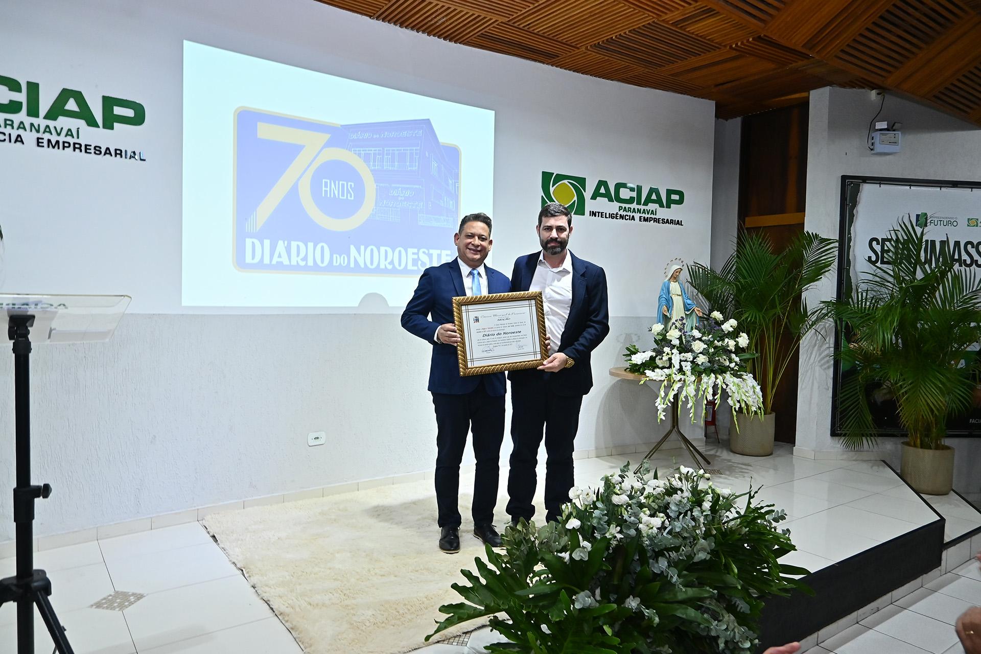 O aniversário de 70 anos do Diário do Noroeste foi comemorado na última quarta-feira, em concorrida solenidade no auditório da Associação Comercial e Empresarial de Paranavaí (Aciap).