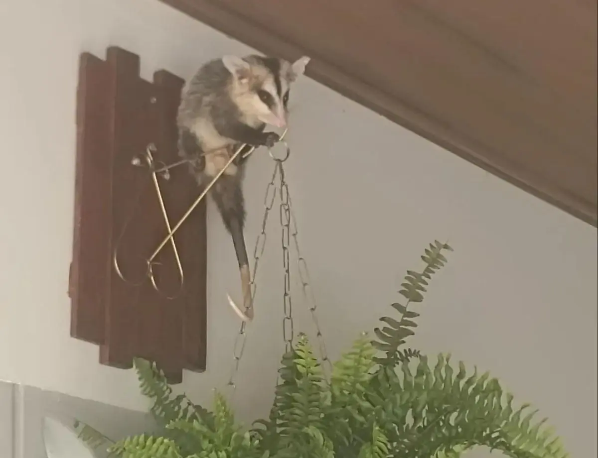 O gambá estava em cima do suporte de uma planta quando foi retirado do local. Em seguida, o animal foi colocado em uma caixa e solto em uma área de mata da cidade. Um vídeo registrado pelos agentes mostra o momento da soltura (veja abaixo).