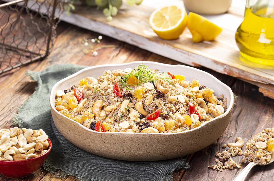 Salada de Trigo com Amendoim, Castanha de Caju e Frutas Secas