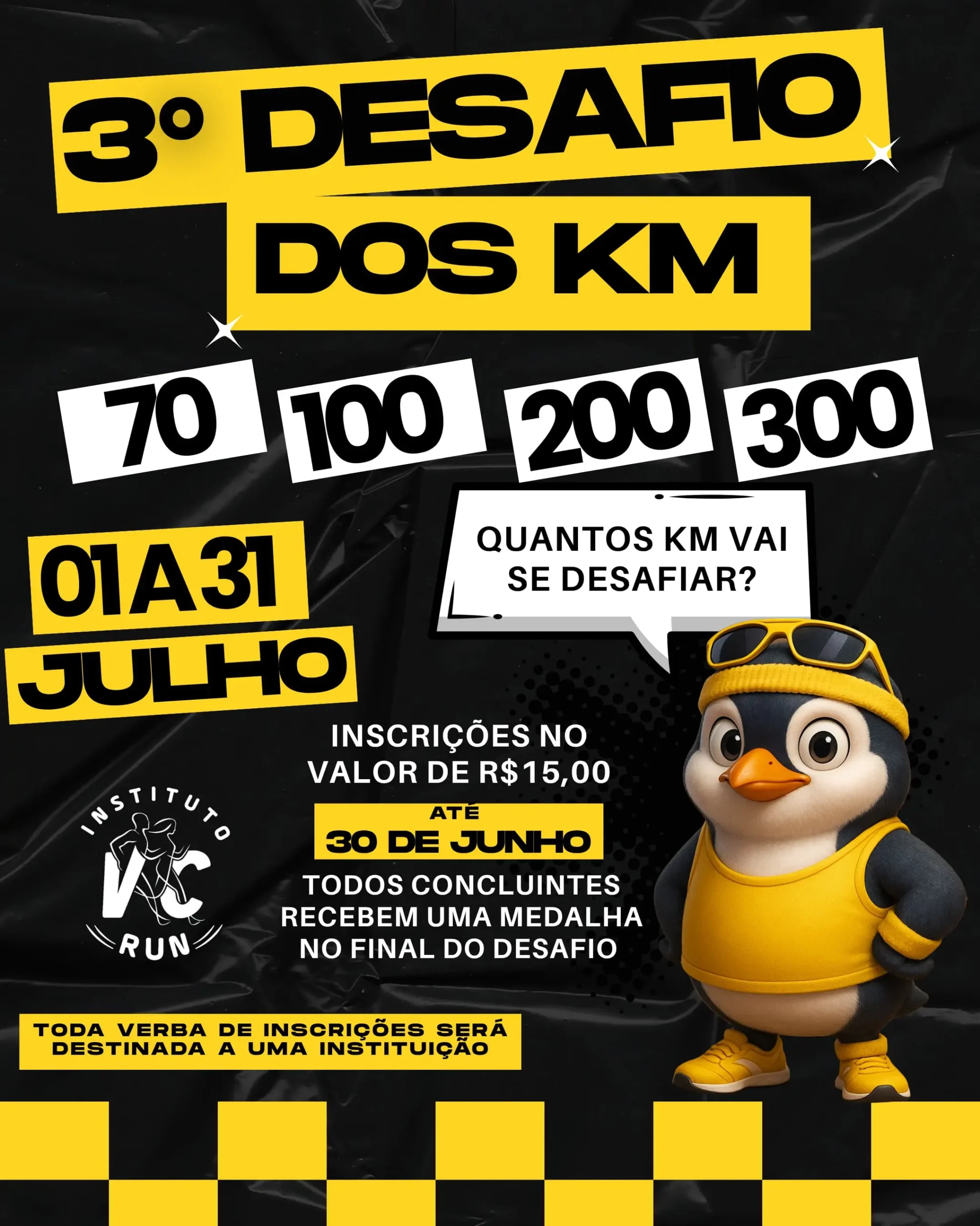 Com inscrições abertas até segunda-feira (30), a terceira edição do “Desafio dos KMs” está convocando os corredores a superar os próprios limites. O objetivo é simples: definir e alcançar uma meta de quilômetros percorridos ao longo do mês de julho. São 70, 100, 200 ou 300 quilômetros.