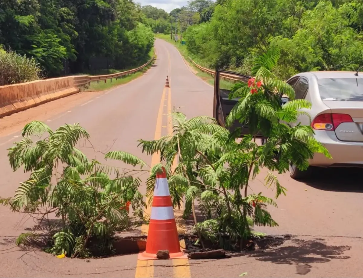 Em uma publicação nas redes sociais realizadas nesta segunda-feira (30), o prefeito de Mirador, Fabiano Travain, informou a população sobre o problema e revelou que o Departamento de Estradas de Rodagem (DER) já foi acionado. Fotos divulgadas pelo prefeito mostram a gravidade do cenário: um buraco na cabeceira da ponte foi sinalizado com um cone e galhos de árvore para alertar os motoristas e evitar acidentes.