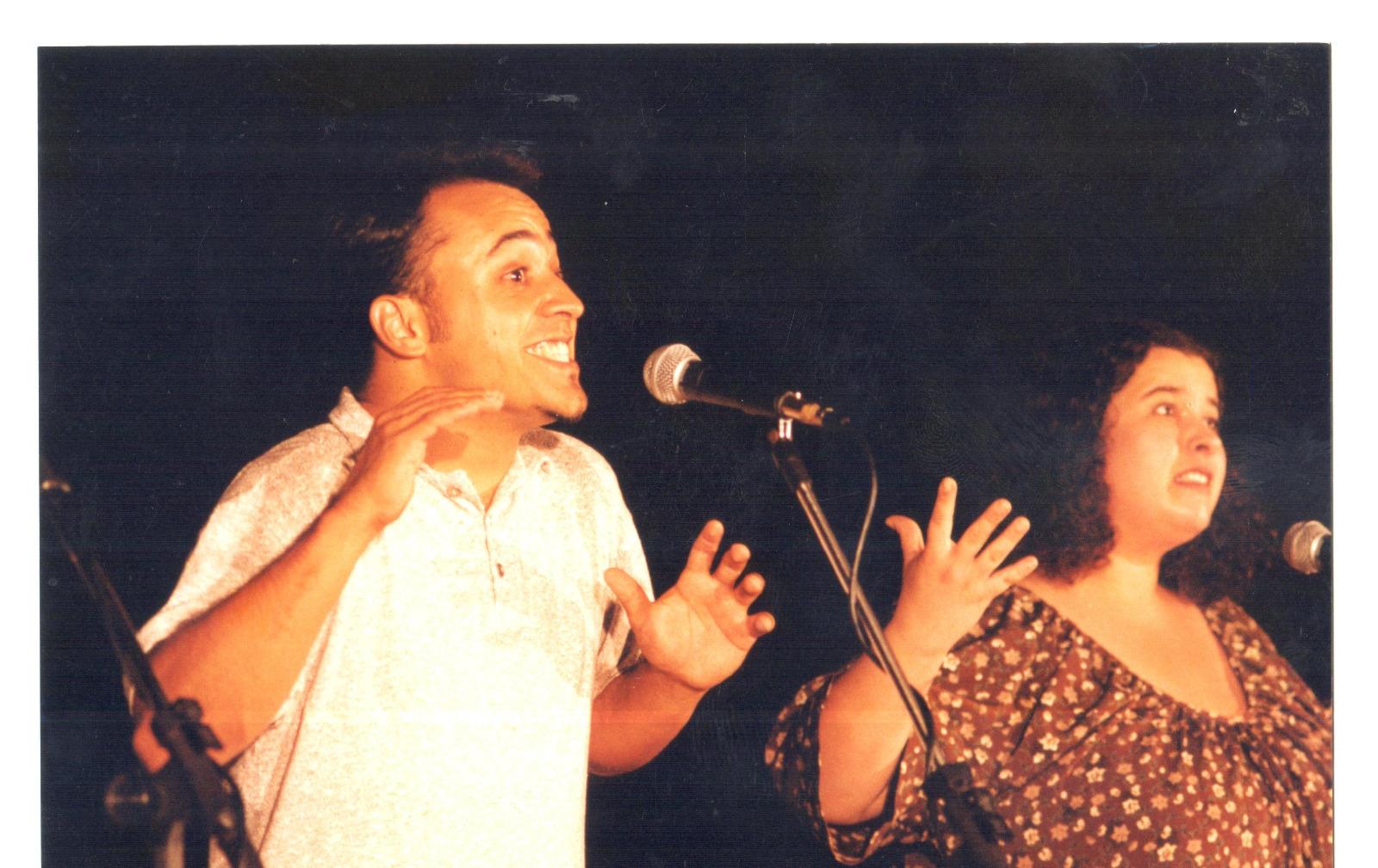 Em 1998, Adriano Moraes e Paula Campos declamaram o poema Lembranças, de autoria de Paulo Campos Foto: Arquivo/Fundação Cultural