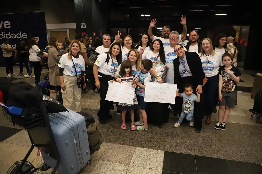 EXPERIÊNCIA – No Aeroporto Internacional Afonso Pena, em São José dos Pinhais, além do entusiasmo e otimismo, os diretores fizeram questão de frisar as boas trocas e experiências de alto nível que tiveram. A iniciativa do Governo do Estado, realizada por meio da Secretaria de Educação (Seed), proporcionou aos diretores a oportunidade de vivenciar o cotidiano das escolas chilenas, conhecer seus sistemas de ensino e estabelecer um intercâmbio de ideias.
