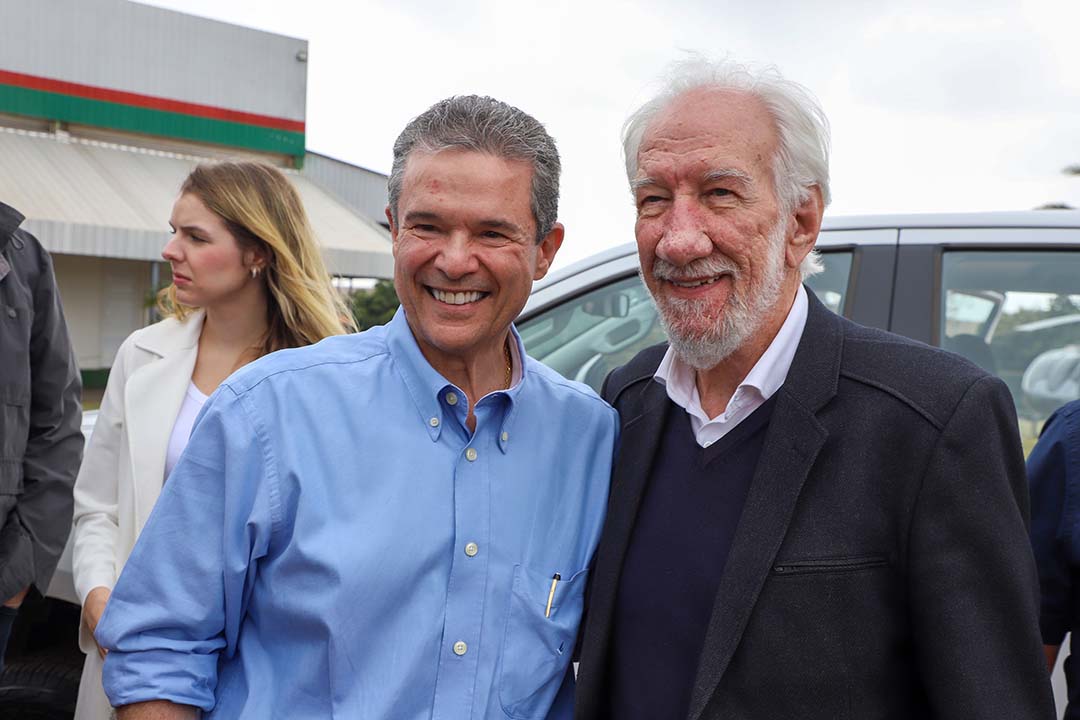 O governador em exercício Darci Piana recebeu o ministro da Pesca e Aquicultura, André de Paula, em uma visita a produtores de tilápia Foto: Ari Dias/AEN