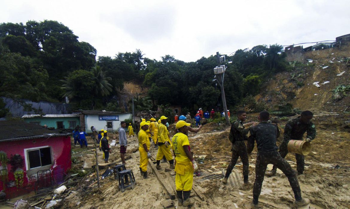 Bairro de Jardim Monteverde, região limítrofe entre Recife e Jaboatão dos Guararapes, atingido pelas fortes chuvas na Região Metropolitana do Recife