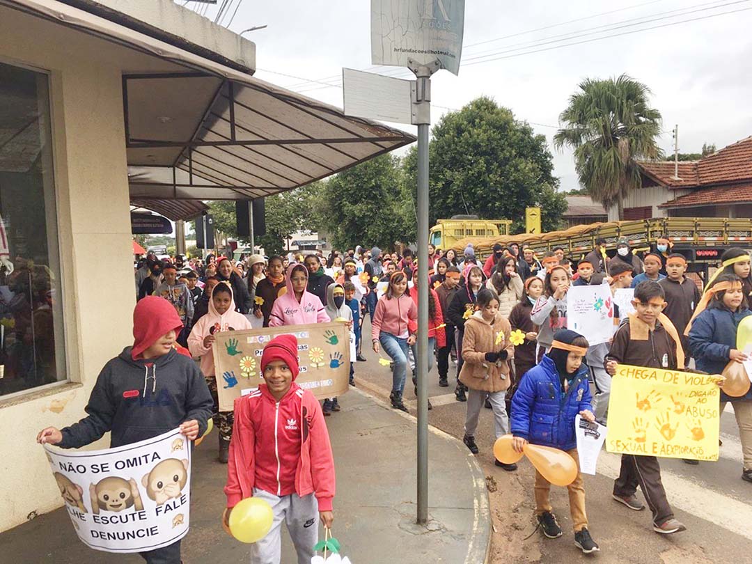 Com cartazes confeccionados pelas crianças, a passeata percorreu as principais ruas da cidade para conscientizar a população sobre o enfrentamento à exploração sexual infanto-juvenil.