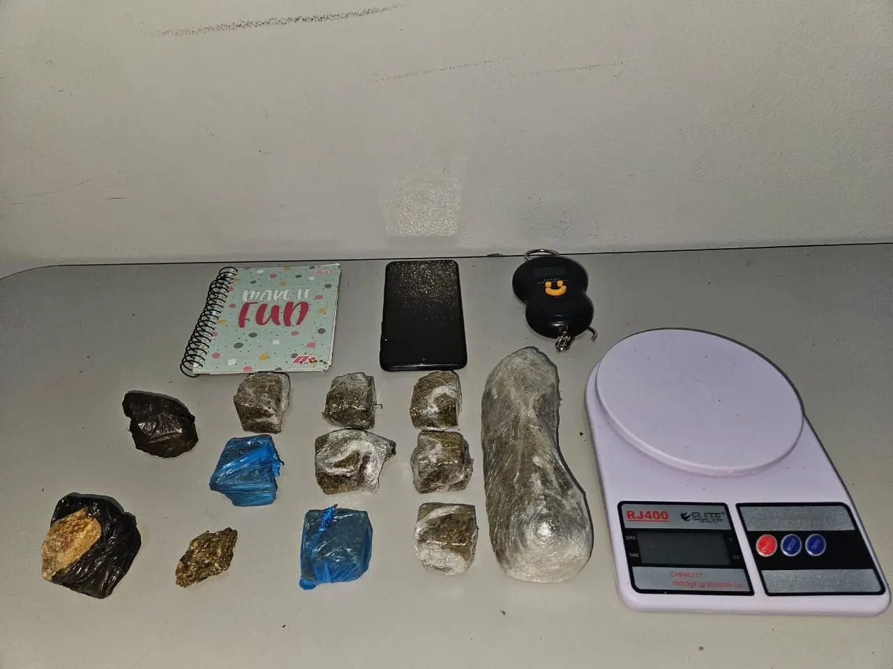 Segundo o boletim de ocorrência, a equipe policial foi informada através da denúncia sobre a comercialização de entorpecentes e iniciou um patrulhamento no local mencionado na acusação. Ao perceber a presença policial, o suspeito arremessou uma bolsa para o quintal ao lado da casa dele e foi abordado. No interior da bolsa foram encontrados porções de maconha e crack, além de duas balanças de precisão e um caderno com anotações referentes ao tráfico de drogas.