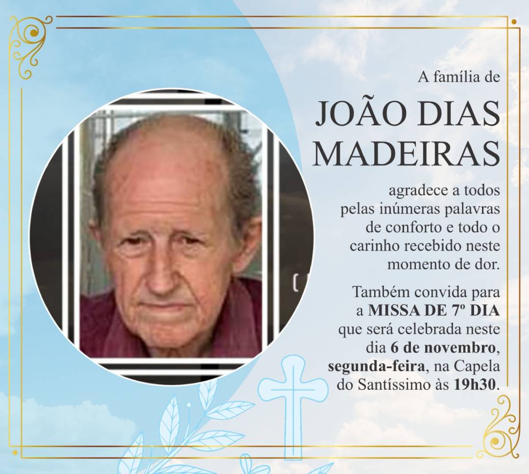 Também convida para a MISSA DE 7º DIA que será celebrada neste dia 6 de novembro, segunda-feira, na Capela do Santíssimo às 19h30.