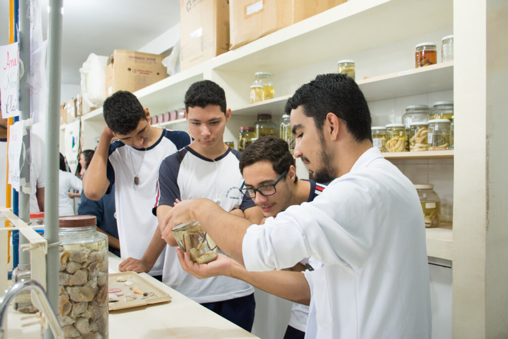 Os mais procurados são Direito, Enfermagem e Educação Física, mas os laboratórios de outras graduações também chamam a atenção dos alunos do ensino médio. A exposição de espécies de animais e a possibilidade de analisar organismos pelas lentes do microscópio atraíram os adolescentes até o laboratório de Ciências Biológicas.