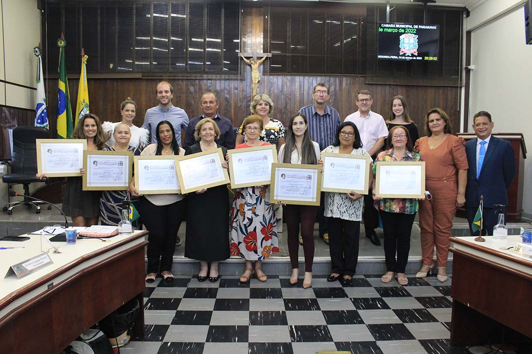 Maria Helena Pereira Fernandes, Líria Inêz Balestieri, Patrícia Albuquerque Lins Cerveira, Edi Marçal Costa, Terezinha Pasinato Dal-Prá, Tereza Gomes, Fernanda Bertoco Mello, Lucimara de Souza Gonçalves e Maria Rocha foram homenageadas pela Câmara de Vereadores de Paranavaí durante sessão solene, na noite dessa segunda-feira (14).