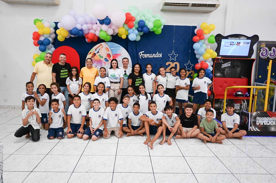 A turminha é da Escola Municipal Professora Edith Ebiner Eckert, da estudante Lara da Silva, ganhadora do concurso de redação cujo objetivo foi responder a uma singela pergunta: “O que é o Natal para você?”