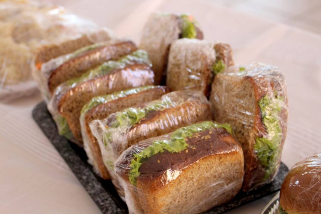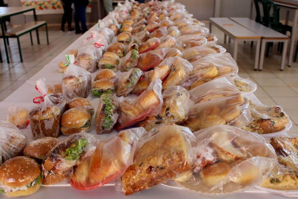 A mesa farta é um convite para satisfazer o paladar. Tem mini-hambúrguer, sanduíche natural, pizza, esfirra, torta de frango sem glúten, fatia húngara, sonho, cuca… Tudo preparado pelas alunas do curso de produção artesanal de alimentos – panificação. Depois de 16 horas de teoria e prática, as 12 participantes colocaram as mãos na massa, literalmente, e preparam salgados e doces servidos no encerramento das atividades.