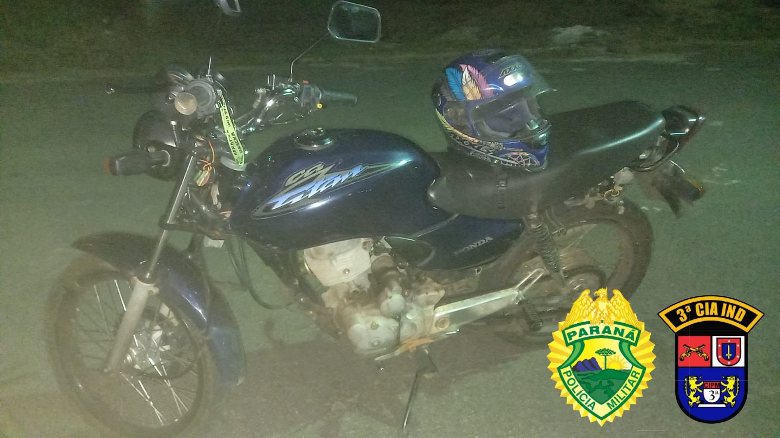 Na noite de ontem (12), em Loanda, a Polícia Militar da 3º CIPM da cidade recuperou uma motocicleta roubada.