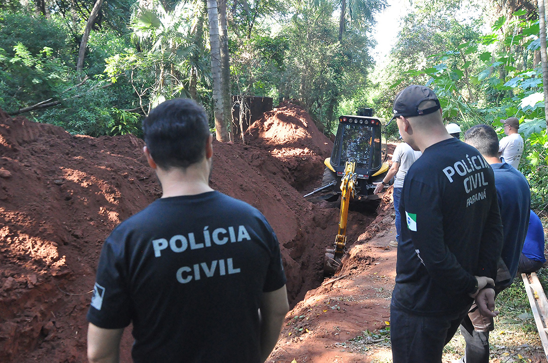A informação na denúncia anônima era que um corpo estaria enterrado em vala dentro do bosque, local próximo onde dias antes foi encontrada a motocicleta do desaparecido.