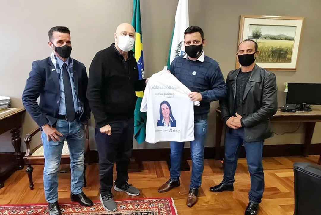 Na oportunidade estiveram no gabinete do deputado estadual Luiz Claudio Romanelli solicitando recursos para a reforma da Praça Central Prefeita Doutora Rose. Aproveitaram ainda para realizar a entrega de uma camiseta na qual está estampada uma homenagem para a ex-prefeita.