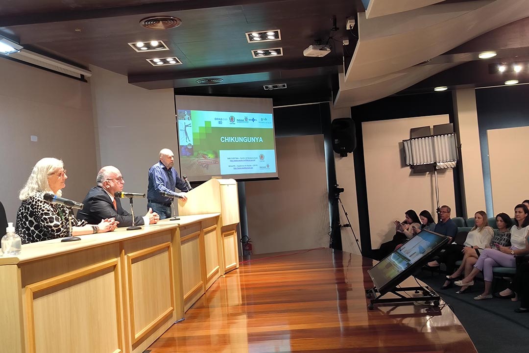 A secretaria estadual da Saúde (Sesa) realizou nesta quinta-feira (16), em Curitiba, mais um ciclo da capacitação sobre enfrentamento da chikungunya. O encontro, que dá continuidade às ações para o enfrentamento da doença no Paraná, reuniu de forma presencial e online, médicos, enfermeiros, profissionais de atenção à saúde, agentes de endemias e agentes comunitários de saúde de todo o Estado.