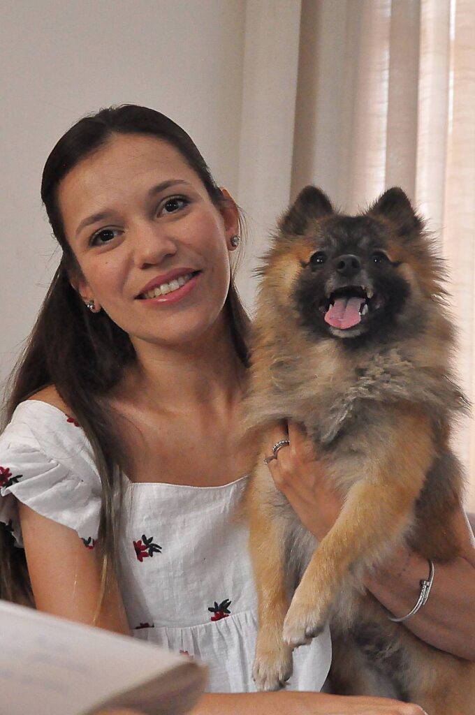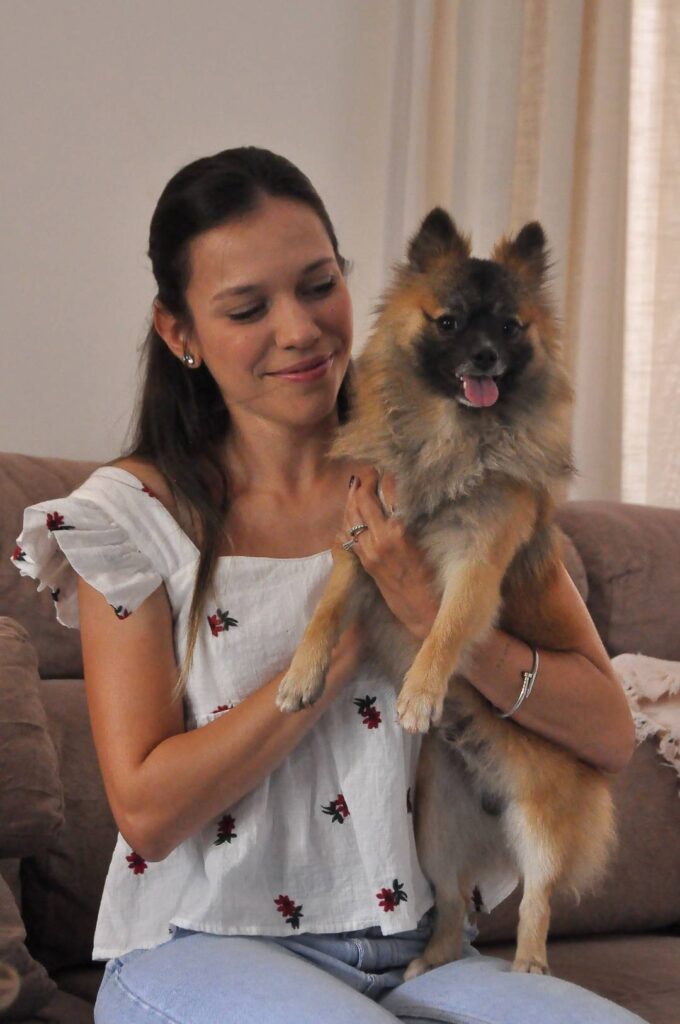 Simba é um Sptiz Alemão, digamos, bastante agitado. Está sempre correndo pela casa e tem o hábito de pular a janela, o que exige atenção constante.