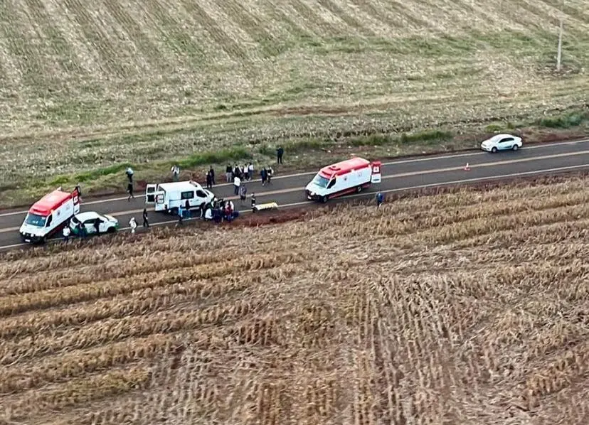 As vítimas, uma mulher, de 40 anos, dois homens, de 46 e 56 anos, uma criança, de 9 anos, e o motociclista, de 32 anos, precisaram ser socorridos pelo Serviço de Atendimento Móvel de Urgência (Samu) e encaminhados a hospitais de Ângulo e Maringá.