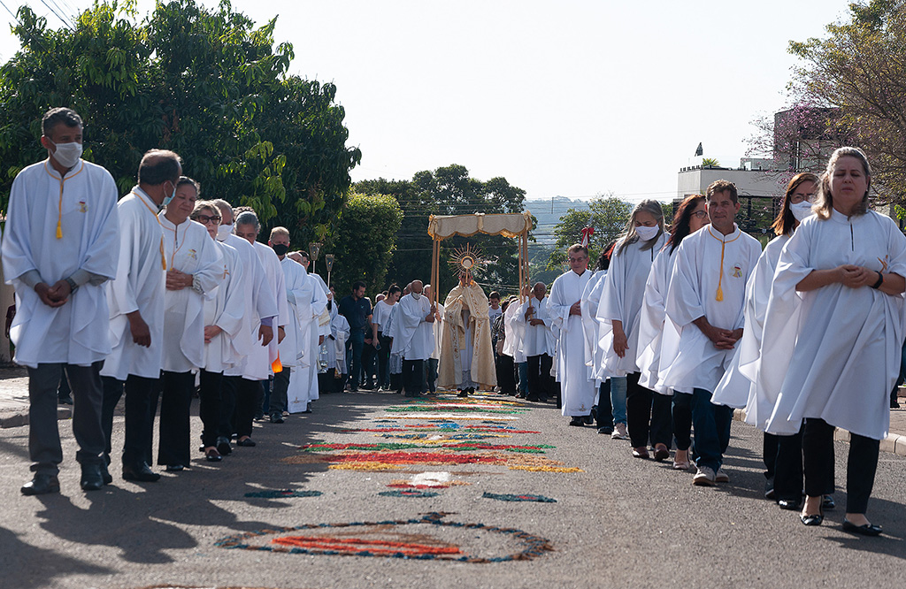 “É um dia de sair de casa e levar Jesus Eucaristia publicamente, por isso convido os ministros para estarem presentes com seus jalecos, os acólitos e coroinhas paramentados, as crianças e todo o povo de Deus e tragam seu terço para rezar no percurso da procissão”, esses são o desejo e o convite de dom Mário.