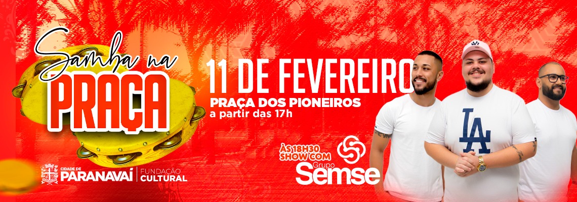 Vem aí mais uma edição do Samba na Praça, evento realizado pelo município de Paranavaí, através da Fundação Cultural. Marcado para o dia 11 de fevereiro, o evento estará cheio de música e diversão, sendo realizado mais uma vez na Praça dos Pioneiros.