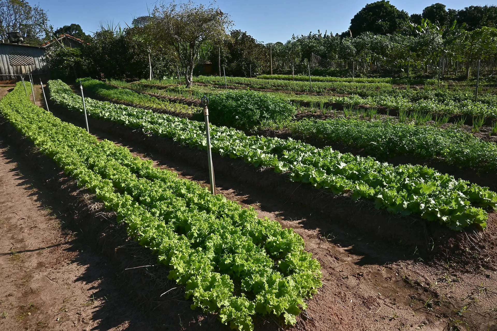 “Acordei e vim ‘bater água’ nas folhas para dissolver o gelo.” A técnica consiste em molhar as hortaliças até o nascer do sol, a fim de evitar perdas. “Foi a primeira vez no ano que precisei ‘bater água’”, contou, já se preparando para repetir a estratégia na madrugada seguinte, nesta quarta-feira (25), para quando a previsão do tempo indicava mínima de 4°C e, novamente, possibilidade de geada.