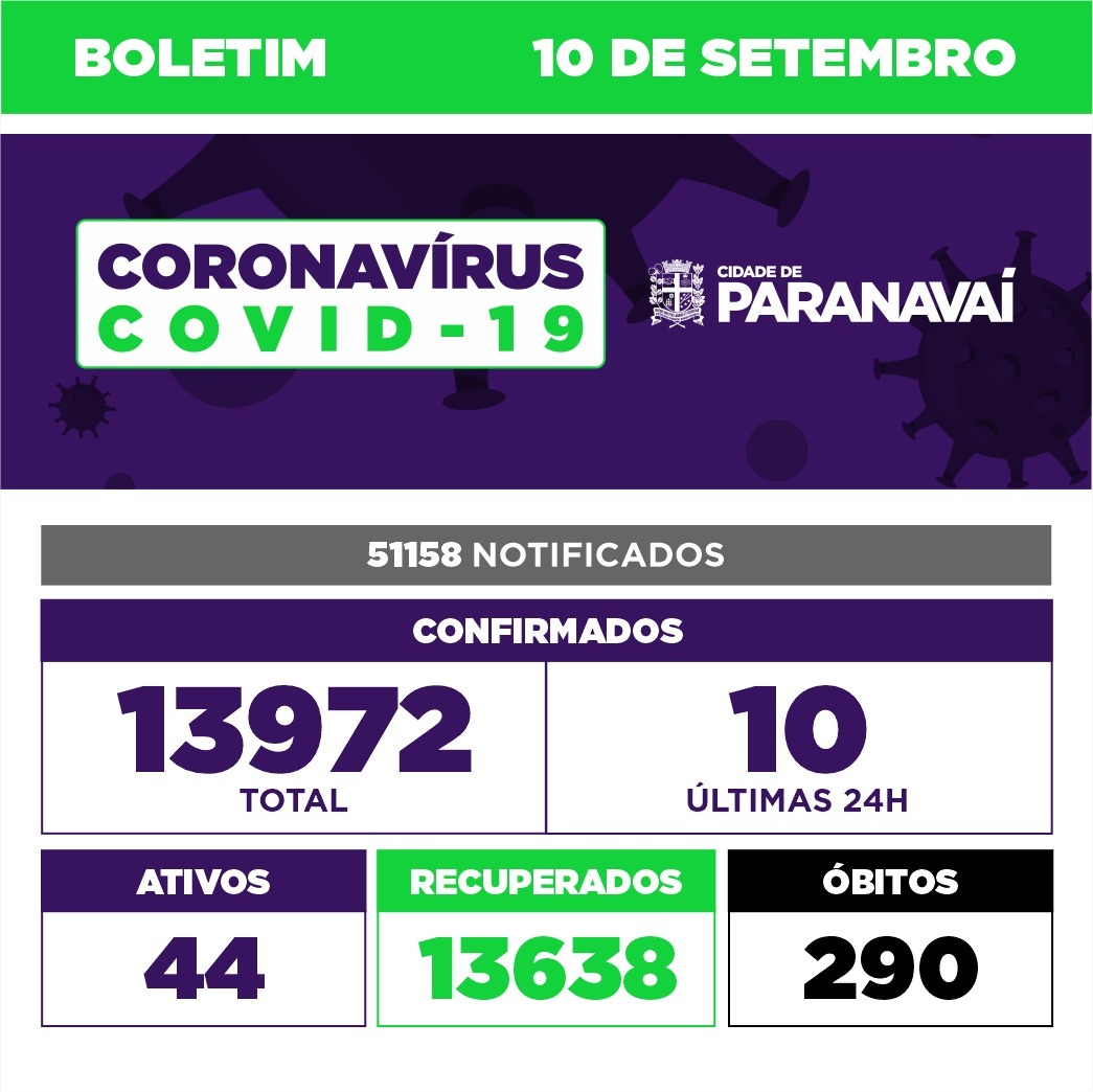 A Secretaria de Saúde de Paranavaí confirmou 10 casos de Covid-19 em Paranavaí nas últimas 24 horas. Também informou que quatro pacientes estão internados em leitos de Enfermaria e UTI.