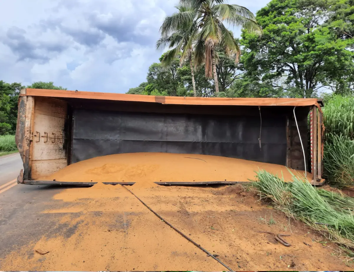 De acordo com a Polícia Rodoviária Federal (PRF), o caminhão Volvo FH-460, com placas de Douradina (MS), transportava três semirreboques carregados com grãos quando uma peça de travamento se quebrou, provocando o desprendimento e a queda de um dos compartimentos de carga. Parte dos grãos ficou espalhada pela pista, exigindo sinalização no local até a remoção completa dos detritos.