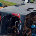 De acordo com o boletim da Polícia Rodoviária Federal, o pneu dianteiro esquerdo estourou e o motorista perdeu o controle do veículo, tombando no canteiro central. O acidente foi na rodovia Régis Bittencourt, no interior de São Paulo, perto das 10h30 da manhã.