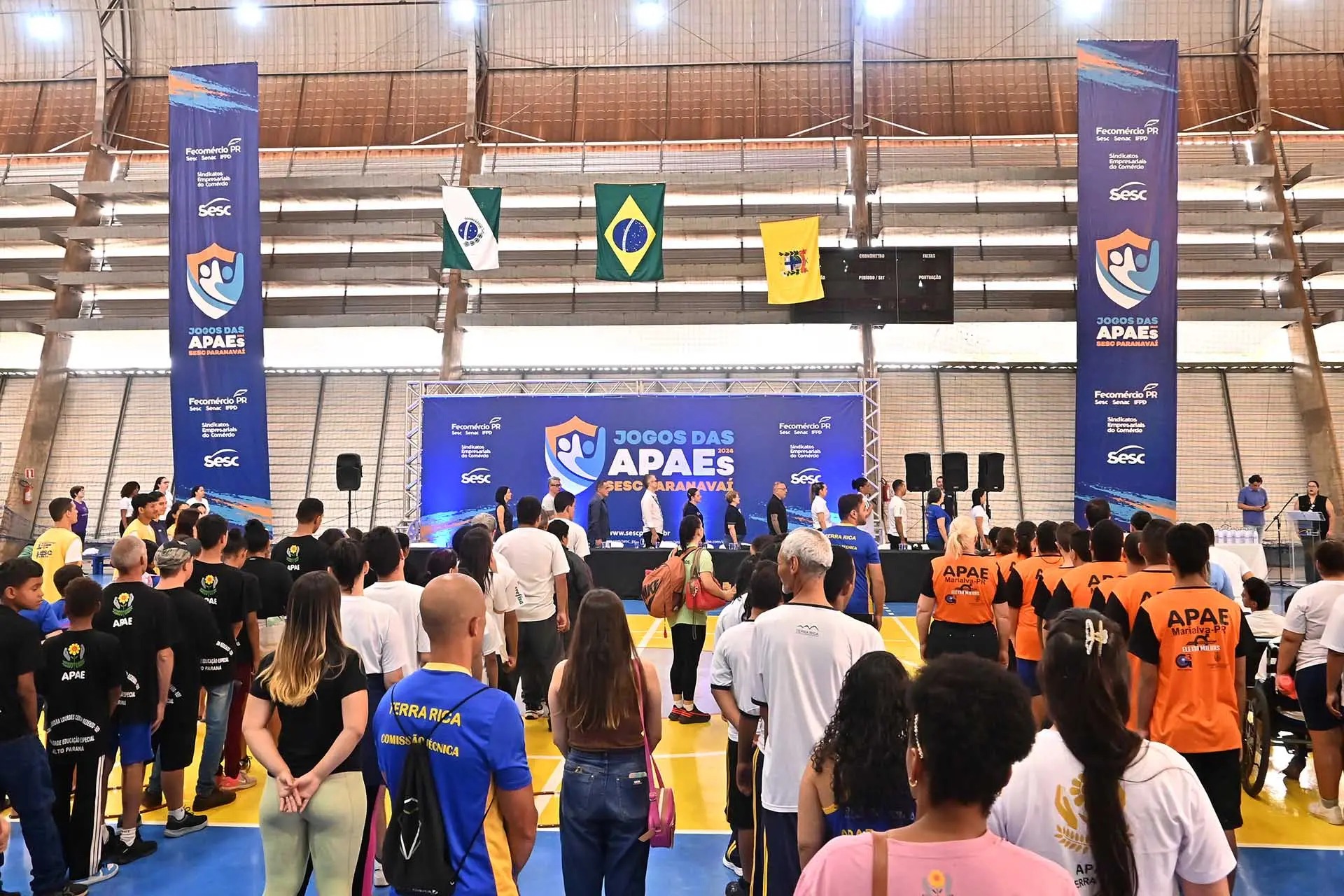 Na manhã desta sexta-feira (13), foi realizada a abertura oficial da 2ª edição dos Jogos das APAEs no complexo esportivo do SESC Paranavaí. Ao todo são 715 participantes, vindos de 19 munícipios do Paraná e que competem em 7 modalidade: futsal, revezamento de travesseirinho, bocha paralímpica, revezamento do bastão, corrida do saco, boliche e arremesso de peso.