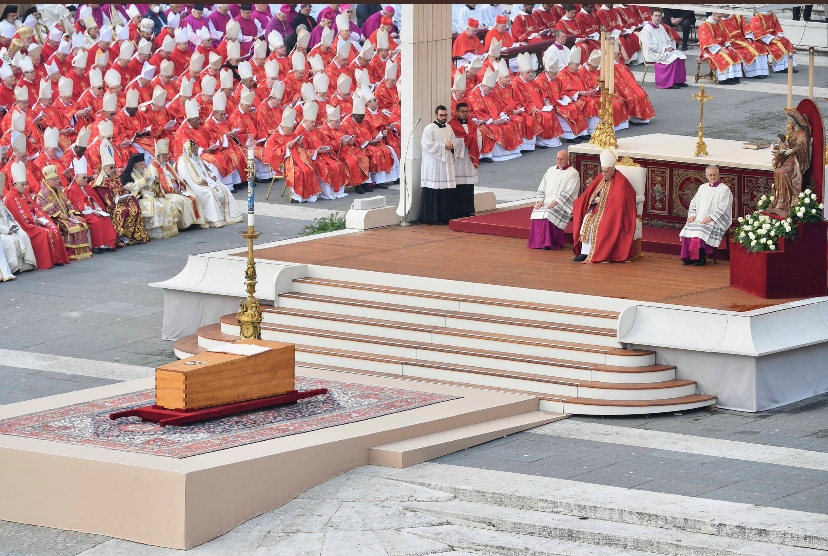 A missa fúnebre presidida por Francisco teve início pouco depois, às 9h30 (5h30 em Brasília). O pontífice argentino, que sofre com dores no joelho devido a um ligamento rompido, deve permanecer a maior parte da cerimônia sentado diante do caixão.