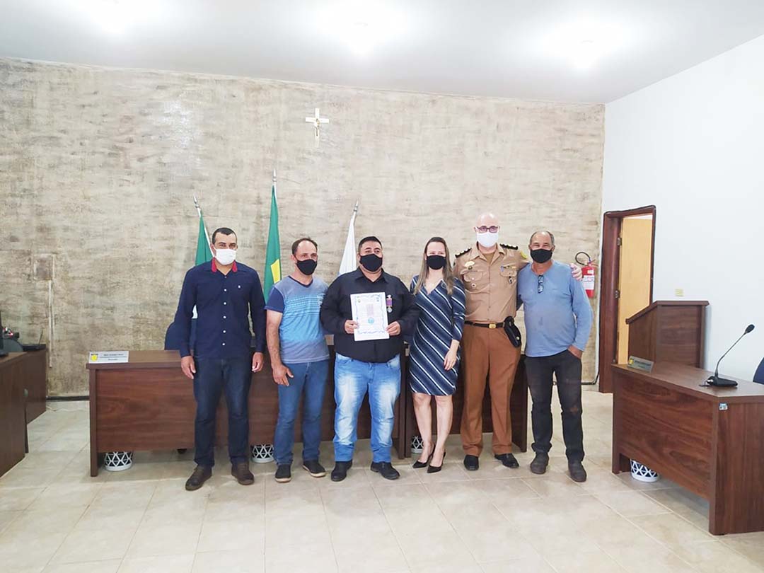 A Câmara Municipal de São Pedro do Paraná foi palco durante a última segunda-feira da entrega da honraria ao soldado da PM, Marcos Antônio Borges, prestada pela Corregedoria da PM, e entregue pelo Comando Geral da Polícia Militar do Paraná, representado no ato pelo Tenente-Coronel Adauto Nascimento Giraldes Almeida.
