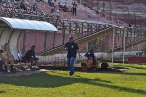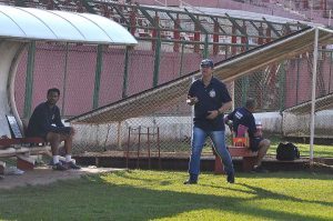 Rúbio Alencar à beira do gramado passa instruções ao jogadores do ACP