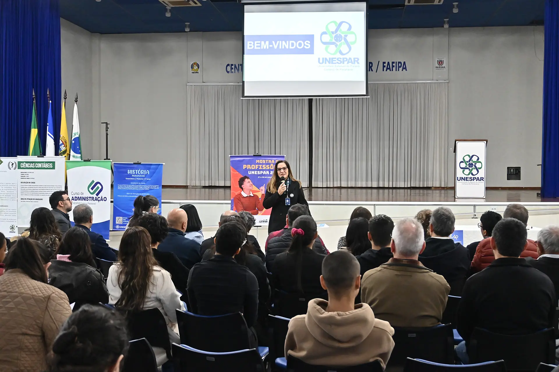 Durante a cerimônia de abertura do vestibular em Paranavaí, a professora Maria Antonia Ramos Costa, diretora do campus de Paranavaí, reforçou que a Unespar é uma instituição pública, gratuita e de qualidade reconhecida, comprometida em oferecer ensino superior a jovens e à comunidade em geral.